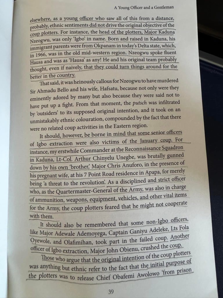 Excerpts from the book, reads: “It was a terrible time for the Nigerian military. As I have said elsewhere, as a young officer who saw all of this from a distance, probably, ethnic sentiments did not drive the original objective of the coup plotters.