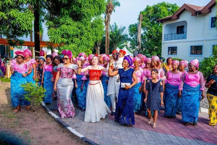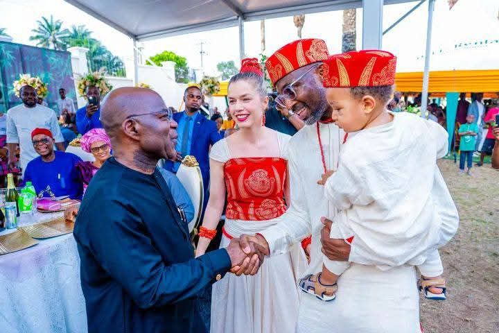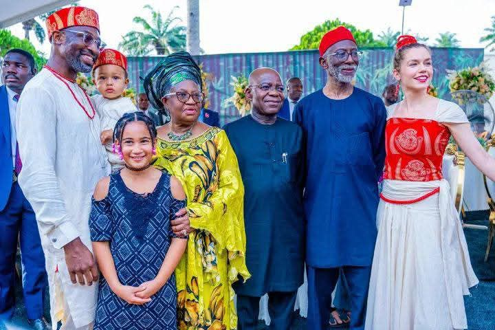 On “December 23rd, Governor Alex Otti, OFR, honoured the invitation of the family of the Director-General of the World Trade Organisation (WTO), and former Minister of Finance and Coordinating Minister of Nigeria’s economy, Dr. Ngozi Okonjo-Iweala, and her husband, Dr. Ikemba Iweala, for the welcoming of Lotte Elsa Goos (Igba Nne) & Kamsochi Iweala, wife and son of Dr. Uzoma Iwela, who had earlier done their traditional marriage in Germany, and everything about the wedding concluded.”